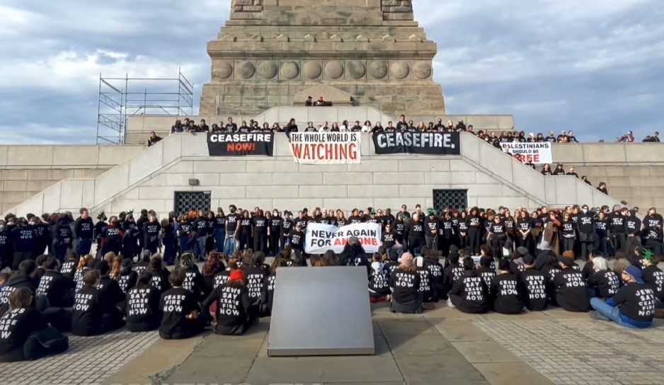 數百名抗議者在紐約自由女神像前靜坐呼籲加沙停火。視頻截圖 環球網引述路透社報道稱,根據“猶太和平之聲”組織發佈的視頻顯示,成群的抗議人士坐在自由女神像的底座旁,高呼“不要再在任何人身上發生,現在也不要”。還有一部分抗議人士站在雕像底座上,把抗議橫幅掛在身前,上面寫著“立即停火!”以及“全世界都在看著”。 報道說,“猶太和平之聲”組織最近幾周在美國紐約曼哈頓中央車站、華盛頓國會大廈都舉行了類似的示威活動。該組織表示,此次自由女神像前的抗議活動吸引了500人參加。路透社稱,“猶太和平之聲”組織反對以色列政府對巴勒斯坦人的政策,認為這是在進行種族隔離。 “就像巴勒斯坦人一樣,我們的許多祖先渴望自由呼吸,”猶太人和平之聲組織在社交媒體X(原推特)上寫道。報道稱,這句話部分來自19世紀猶太裔女詩人愛瑪·拉扎勒斯的一首十四行詩《新的巨人》,該詩被刻在自由女神像的底座上。 路透社稱,抗議活動組織者和警方沒有透露是否有人因此次活動被捕。 就在抗議活動發生之際,加沙衛生部門表示,以色列對加沙地帶的襲擊已造成超過1萬人死亡,其中包括4000多名兒童。當地時間11月6日,聯合國秘書長古特雷斯發表聲明表示,加沙地帶所發生的是一場“人性的危機”,加沙成為了“兒童墳場”,呼籲人道主義停火。 【編輯:梅婉潼】