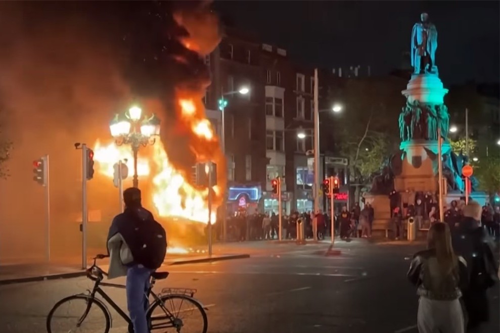 都柏林持刀襲擊事件引發反移民騷亂,多架汽車被示威者縱火燒毀。視頻截圖 綜合報道,當地警方說,刀襲事發在當天下午1時許,一些公眾曾嘗試制止男子。一名30多歲婦女和一名五歲女童傷勢嚴重,另有一名五歲男童和一名六歲女童傷勢較輕。警方已拘捕一名40多歲男子,他也在襲擊中重傷送院。 愛爾蘭國家警察局局長哈里斯說,不排除這起刀襲事件任何可能,包括恐怖襲擊。“我絕不會排除這起襲擊的任何可能動機。正如我從一開始就說……我們將追查所有調查途徑,以確定行兇動機。” 刀襲事件發生後,反移民示威者抵達奧康奈爾街(O’Connell Street)主幹道附近的事發現場,引發騷亂。停在假日酒店和麥當勞快餐店附近的一輛警車和雙層巴士被燒毀,玻璃窗被打破,商店被掠奪。 大群蒙面示威者向戴著頭盔和盾牌的防暴警察拋擲雜物,公共交通服務被迫暫停。當局敦促病患暫時不要前往靠近事發現場的一家婦產科醫院。 愛爾蘭司法部長麥肯蒂說:“一群人包括暴徒和罪犯,正在利用這起襲擊製造嚴重破壞。”哈里斯說,警方已調派400名警察到場恢復公共秩序。他說:“這些行為是可恥的。我們出現了一個完全瘋狂的流氓派系,受極右意識形態驅動進行嚴重暴力活動。” 自去年以來,愛爾蘭的反移民抗議活動有所增加。最近的一次抗議活動導致國會議員被困在議會大樓內,愛爾蘭政府正在審查議會周圍的安全情況。 全國人口為530萬的愛爾蘭對於外來移民問題的不滿被這場傷害案件激發,該國在俄烏戰爭爆發後有多達10萬名烏克蘭難民湧入該國,成為歐盟中難民數量最多的國家之一。(完) 【編輯:梅婉潼】