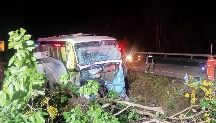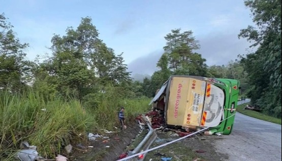 車禍現場。視頻截圖 警方初步調查顯示,事故車輛為一輛曼谷旅遊大巴,車上有46名乘客和3名工作人員,在前往宋卡府納塔威縣途中,突然失控撞向樹木,車頭分裂成兩半,數名乘客當場死亡。發生事故時,車內多數乘客未系安全帶。 警方及緊急救援團隊迅速趕往現場,救出被困乘客,並將傷者送往附近醫院治療。據幸存乘客回憶稱,車禍發生時,大巴行駛正常,然後突然失去控制並發生爆炸,造成乘客在車內被甩動。 目前,警方正深入調查事故原因,以採取相應措施防範類似事件再次發生。 經中國駐泰國大使館與泰國警方及相關部門核實,目前暫未有中國公民傷亡。(完) 【編輯:梅婉潼】