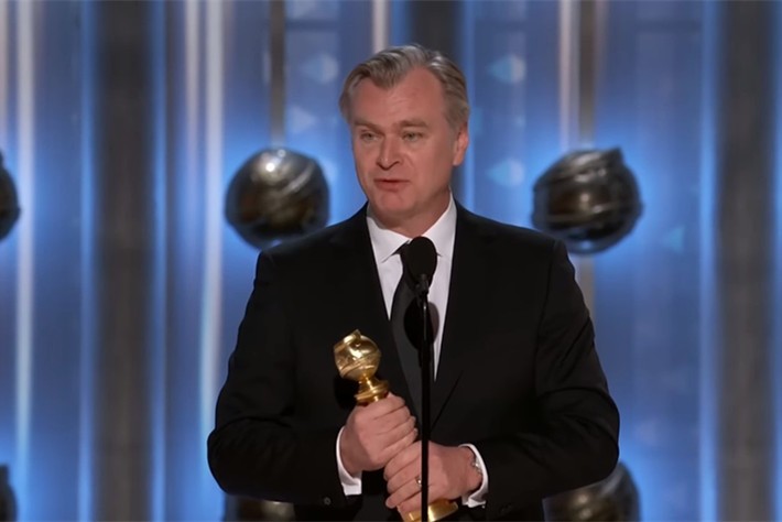 當地時間1月7日,《奧本海默》導演克里斯托弗·諾蘭在美國電影電視金球獎頒獎典禮上。視頻截圖 環球網引述美國雜誌《好萊塢報道》稱,由克里斯托弗·諾蘭執導的電影《奧本海默》摘得最佳影片(劇情類)、最佳導演、最佳男主角、最佳男配角和最佳原創配樂等五項大獎。 《好萊塢報道》稱,基里安·墨菲憑藉《奧本海默》榮獲劇情類最佳男主角。“當我第一次走在克里斯·諾蘭的片場時,我就感受到了不一樣,”墨菲在獲獎感言中說道,從嚴謹程度、專注程度、奉獻精神等等情況來看,“我是在一位有遠見的導演執導下”獲此獎項。