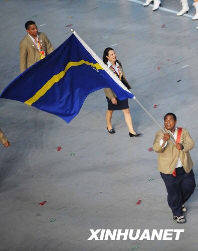 2008年北京奧運開幕,瑙魯代表團旗手入場。(新華網) 瑙魯屬大洋洲,位於中太平洋、赤道以南約42公里處,由一獨立的珊瑚礁島及周邊海域構成,全島長6公里,寬4公里,海岸線長約30公里。全島3/5曾為磷酸鹽所覆蓋。屬熱帶雨林氣候。陸地面積21.1平方公里,海洋專屬經濟區面積32萬平方公里。 該國人口數約1.3萬,多為密克羅尼西亞人種,其餘為其他太平洋島國人、華人、菲律賓人和歐洲人後裔。另有約2000瑙魯人居住在澳大利亞。英語為瑙魯官方語言,通用瑙魯語。居民多數信奉基督教新教,少數信天主教。