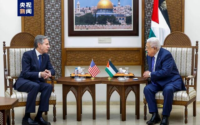 香港中通社2月8日電 當地時間2月7日晚,巴勒斯坦總統阿巴斯在約旦河西岸城市拉姆安拉(Ramallah)會見了到訪的美國國務卿布林肯。