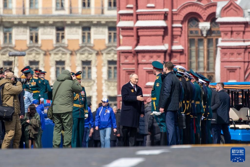 5月9日,在俄羅斯首都莫斯科,俄羅斯總統普京(中)與參與閱兵式的人員握手。新華社圖片 普京在致辭中說,西方企圖在全球範圍內挑起衝突和民族間的敵對,遏制擁有主權的發展中心。俄羅斯將採取一切措施,不允許全球衝突的發生,也不允許任何人威脅俄羅斯。他表示,俄戰略力量始終處於戰備狀態。 他表示,俄羅斯當前正處於困難時期,俄羅斯的命運和未來取決於每一個人。 普京還向俄對烏特別軍事行動的參與者、老兵,以及所有在衛國戰爭中犧牲的人致敬。講話期間,普京宣布為紀念在衛國戰爭中逝去的軍人和親人默哀一分鐘,現場肅立。 普京表示,勝利日將不同世代的人們團結在一起。“我們相信,我們將共同確保俄羅斯和我們團結的人民擁有自由、安全的未來!”普京說。 最後,普京以“為了俄羅斯!為了勝利!烏拉!”結束講話。現場隨後三呼“烏拉!” 1945年5月8日當地時間午夜,納粹德國在柏林郊區的卡爾斯霍斯特正式簽署無條件投降書。此時,地處柏林以東的蘇聯已是5月9日凌晨。蘇聯把5月9日定為“衛國戰爭勝利日”。 蘇聯解體後,俄羅斯自1995年起每年5月9日舉行衛國戰爭勝利日閱兵式。(完) 【編輯:馬華】