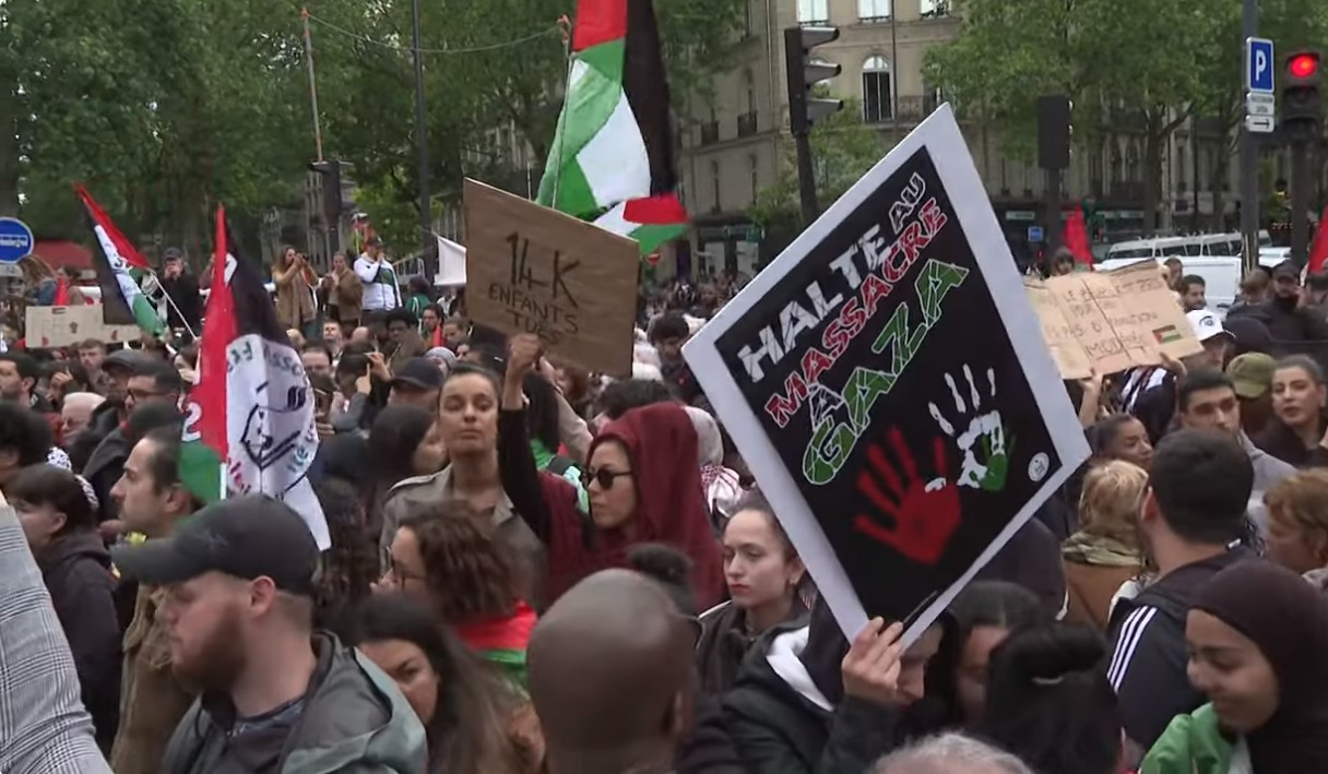 法國巴黎27日爆發萬人示威,抗議以色列對加沙地帶南部城市拉法的致命轟炸。視頻截圖 成千上萬名示威者聚集在距離以色列駐巴黎大使館的數百米處,高呼“我們都是加沙兒童”“解放加沙”和其他親巴勒斯坦口號。 主辦這次抗議集會的“法國—巴勒斯坦團結會”代表里佩表示,他們不能再容忍屠殺。他說,以色列在流離失所者營地引發大火,使平民深陷火海,但法國甚至沒有傳召以色列大使。這是不可接受的。 集會上有一面印了法國總統馬克龍、美國總統拜登和以色列總理內塔尼亞胡照片的橫幅,橫幅上寫著:“他們是泯滅人性的凶手。”法國和美國均強調以色列必須保護加沙平民。 巴黎警察局說,約一萬人參加當天的示威活動。 以色列26日晚上轟炸拉法西北部指定安全區內一個收容流離失所者的帳篷營地,造成45人死亡,包括23名婦女、兒童和老人,另有249人受傷。以色列因這起致命襲擊受到國際社會的譴責。 內塔尼亞胡27日表示,這起導致平民死傷的襲擊為“非常不幸的意外”,並承諾將會查個水落石出。 另一方面,也門胡塞武裝發言人27日說,胡塞武裝對美國海軍部署在紅海的2艘驅逐艦發動了無人機襲擊,並準確擊中目標,但發言人並沒透露襲擊的具體時間,只是說,以色列停止在加沙地帶的軍事行動之前,胡塞武裝不會停止對美英軍艦和一些海運航線的襲擊。(完) 【編輯:梅婉潼】