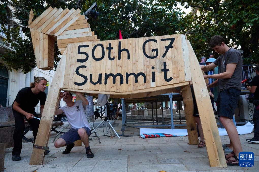 6月13日,在距七國集團峰會會場60公里的意大利布林迪西市,抗議者製作“特洛伊木馬”諷刺并抗議七國集團峰會。圖自新華社 綜合消息,當天大批抗議者聚集在距峰會會場60公里的布林迪西市,部分人手舉巴勒斯坦國旗,現場還張貼有“抵制七國集團”、“停止破壞地球”、“不要戰爭”等標語。抗議者抨擊七國集團在環境保護、社會公平、維護和平等領域“沒有發揮積極作用”,沒有採取切實措施應對全球性挑戰。 參加抗議的德國大學生盧卡斯·胡弗特受訪時說,七國集團在處理國際事務中“充滿偽善”,“對世界弱勢群體完全沒有任何幫助”。 據報道,七國集團峰會預計將通過一項協議,即通過凍結的俄羅斯資產的收益作為支撐,為烏克蘭提供貸款。此舉遭到國際社會批評。 國際慈善團體樂施會在其網站上發表文章指,七國集團“資助戰爭時財大氣粗”,卻不願幫助解決饑餓問題。消除全球饑餓每年需要317億美元的經費,如果七國集團再為最貧窮國家多免除40億美元的債務,兩項加起來也只佔這些國家去年共約1.2萬億美元軍費的2.9%。 本次峰會將於15日結束。會場周邊每天都會舉行抗議活動。意大利警方部署了約7000名警力。 七國集團由英國、美國、法國、德國、意大利、加拿大和日本組成。意大利是今年七國集團輪值主席國。此次峰會主要圍繞俄烏衝突、加沙局勢以及氣候變化和人工智能等議題進行討論。除七國集團領導人外,另有十餘個國家和國際組織的領導人應邀與會。(完) 【編輯:梅婉潼】