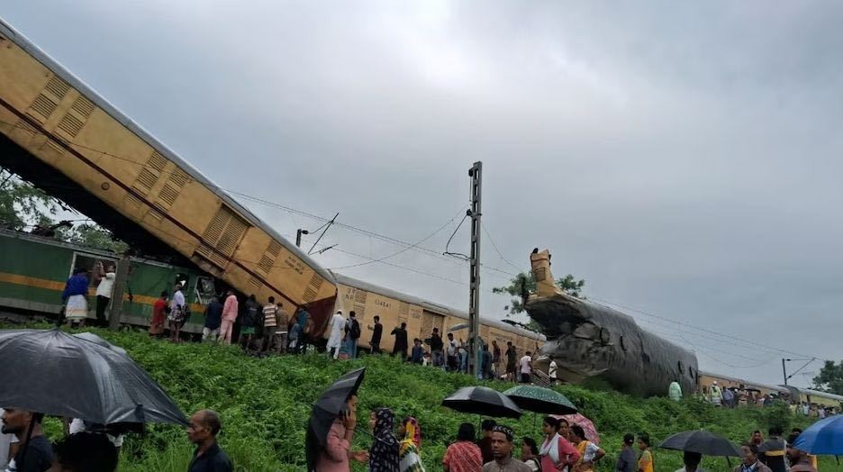 當地時間17日上午,一列從印度東北部阿加爾塔拉開往西孟加拉邦首府加爾各答的客運列車,在行經大吉嶺地區時,遭一列貨運列車從後方追撞,造成至少三節車廂脫軌。其中一節車廂幾乎“騰空豎起”懸在空中,部分車廂嚴重扭曲。貨物列車上的貨櫃散落在軌道上。