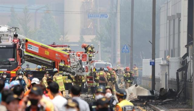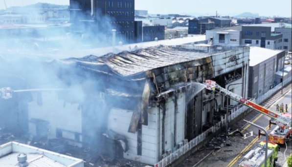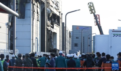 6月24日,消防員在韓國京畿道華城市的電池工廠火災現場滅火。新華社圖片 明火於當天下午3時10分許得到基本控制。隨即消防部門開始在火災現場搜尋失蹤者,發現20餘具被燒焦遺體,疑似為火災發生當時失聯人員。 據消防部門稍早前發布的數據,此次火災共導致23人失蹤,其中20人為外國人、2人為韓國人、1人國籍不祥。由於搜尋工作尚未完全結束,確切的傷亡人數有待進一步核實。 24日上午10時31分,ARICELL位於京畿道華城市西新面工廠的第三樓發生火災。該廠區共有11棟樓,此次火災發生在第三棟樓的第二層。當時第三棟樓共有67名員工作業,1層和2層分別有15人和52人。 據報道,事發樓裡存放有3.5萬多個鋰電池成品。考慮到鋰是有害化學物質,消防部門迅速發布2級響應,並出動消防員等145人和50台設備開展了滅火工作。(完) 【編輯:馬華】