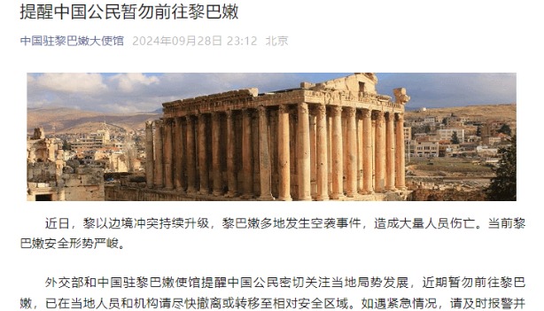 香港中通社9月25日電 當地時間24日,以色列軍方持續空襲黎巴嫩,聲稱再殺死真主黨一名負責策劃襲擊以色列的指揮官。黎巴嫩衞生部表示,以軍過去兩日的空襲中,至少569人死亡,包括逾140名婦孺,超過1800人受傷。英國呼籲在黎巴嫩的英國公民立即撤離。