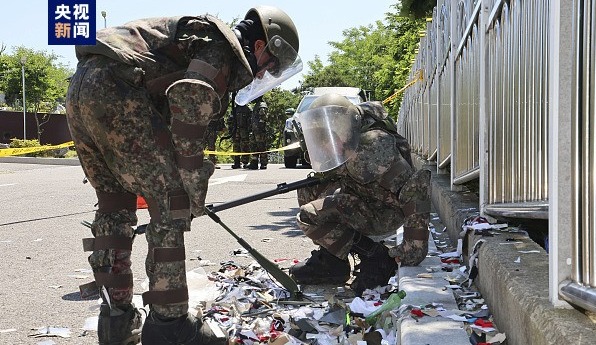 資料圖為韓國士兵回收朝鮮用氣球空飄的垃圾并清理現場。央視新聞圖片 韓聯社報道,基於安全考慮,韓國航空部門在朝鮮的垃圾氣球過於靠近機場時關閉跑道。韓國航空廳6月1日首次為此關閉仁川機場跑道54分鐘;6月2日又關閉了37分鐘;仁川機場6月24日因為垃圾氣球關閉了8分鐘;6月26日關閉166分鐘;7月24日,金浦機場關閉58分鐘;9月23日,仁川機場再次關閉90分鐘。 韓國聯合參謀本部23日警告,若朝鮮繼續向邊境放飛垃圾氣球,若該行為對國民安全構成嚴重危害或觸犯底線,軍方將果斷採取軍事措施予以應對。 報道指,這也是自5月朝鮮開始向韓國大規模投放垃圾氣球以來,韓國軍方首次發出報復性警告。(完) 【編輯:淩玉輝】