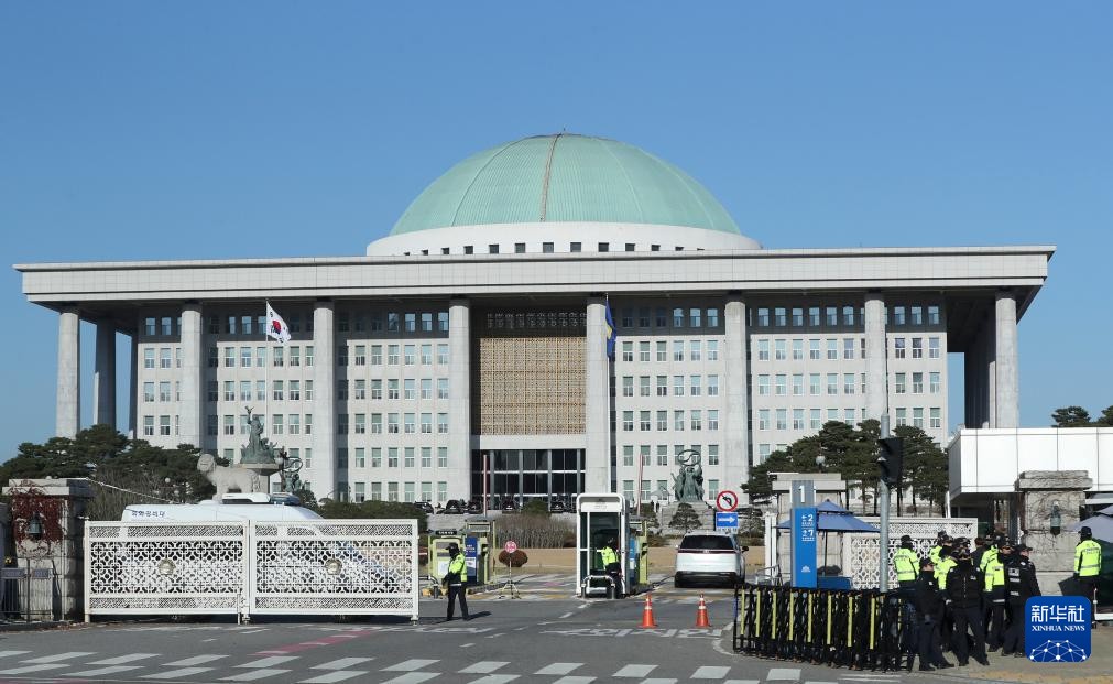 12月4日,警察聚集在韓國首爾的國會議事堂附近。新華社圖片