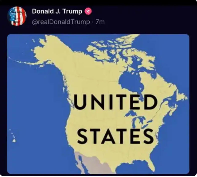特朗普發布“新版”美國地圖,加拿大被納入分享到: