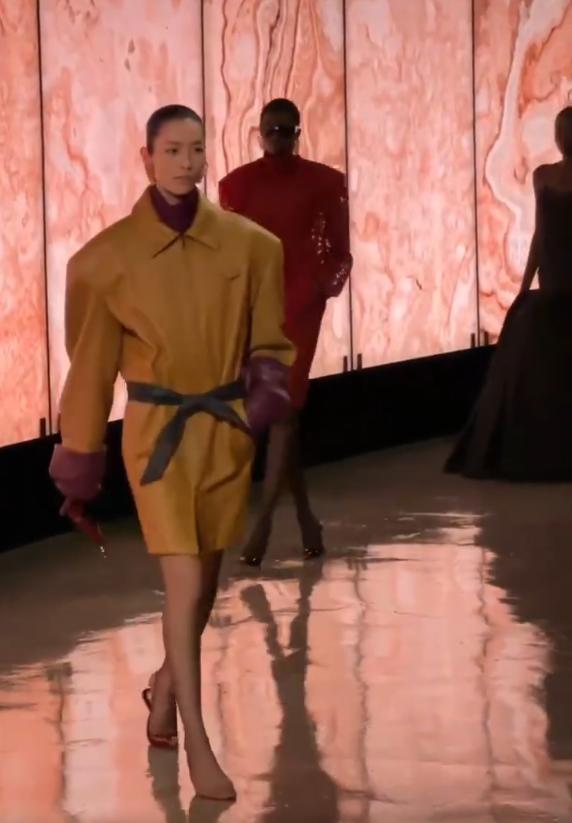 走秀現場(紅星新聞) 網友紛紛“點讚”劉雯的專業功底和應變能力。有人留言說,“(高跟鞋)拿手裡就是時尚單品,好時髦”,“不愧是頂級超模,臨場反應絕了”。