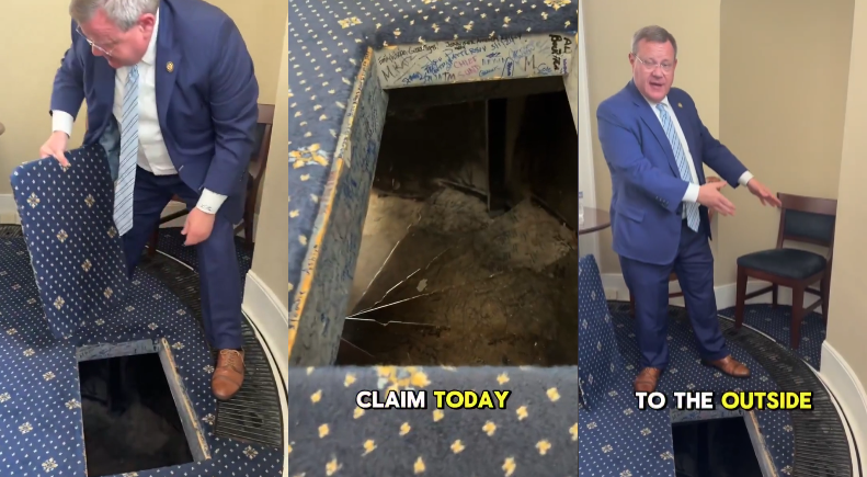 美議員展示國會大廈秘密通道:掀開地板,直通大廈外分享到: