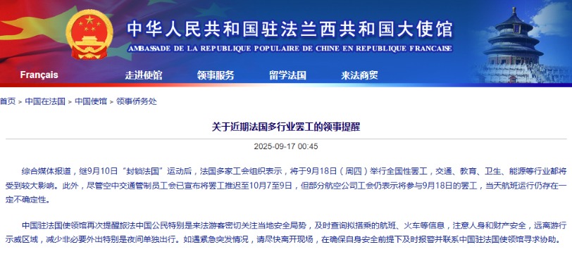 9月10日,在法國巴黎街頭,示威者用垃圾桶封鎖道路。圖片來源:新華社 據法國內政部統計,全國當天總計超17萬人參加抗議活動。法國總工會則宣佈有25萬人參加。 據報道,抗議者在法國多個城市封鎖街道、點燃火堆。在雷恩,示威者燒毀了一輛公共汽車,在圖盧茲近郊,他們損壞了鐵路線上的電纜。多起抗議行動升級為與警方的衝突。 法國內政部表示,當天約8萬名警察和憲兵維持社會秩序,各地警方共逮捕473人,其中在首都巴黎逮捕203人。13名警察在執行任務時受傷。巴黎市中心一家餐廳和一棟建築在抗議活動中遭燒毀。 法國教育部宣布,當天全國約有100所高中停課,另有27所學校遭示威者封鎖。 受抗議活動影響,法國多地鐵路交通暫時中斷。巴黎盧浮宮博物館只開放少數幾個展廳,奧賽博物館關閉。 據法媒報道,新任總理勒科爾尼當晚前往設在內政部的跨部門危機處理辦公室,研判局勢發展。 今年7月,時任總理貝魯公布2026年預算草案,計劃削減財政支出438億歐元,以防範公共債務風險進一步加劇,具體舉措包括把兩個公共假日改為工作日、醫保支出增幅減半等。這一草案引發巨大爭議,遭到民眾普遍反對,也成為10日全法抗議活動的導火索。 貝魯領導的政府9月8日未能通過國民議會信任投票,貝魯9日代表政府向總統馬克龍遞交辭呈。馬克龍隨後任命原國防部長勒科爾尼為新總理。(完) 【編輯:林曉惠】