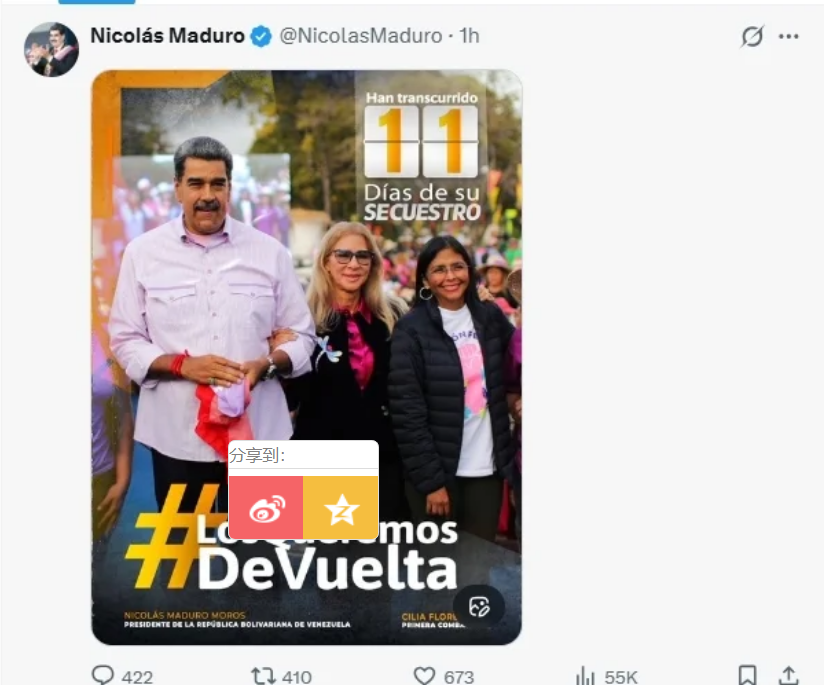 馬杜羅社交平台發布照片 配文稱“被綁架已11天”分享到:
