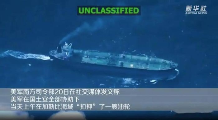 (新華社視頻截圖) 消息說,美軍在美國土安全部支持下順利“扣押”船名為“薩吉塔”號的油輪,並稱該油輪“無視”美國在加勒比海域的“禁令”繼續運營。消息稱,美國將確保只有經與美方“協調”的石油才能從委內瑞拉運出。 據美國媒體報道,這是美國“扣押”的第七艘與委內瑞拉相關的油輪。 美國3日對委內瑞拉發起大規模軍事行動,強行控制委總統馬杜羅夫婦並將他們帶到美國。美國總統特朗普稱,美國將“管理”委內瑞拉,並宣布美國大型石油企業將進入委內瑞拉投資。 2025年12月,特朗普下令對所有進出委內瑞拉的受美製裁油輪實施“全面徹底的封鎖”。(完) 【編輯:淩玉輝】