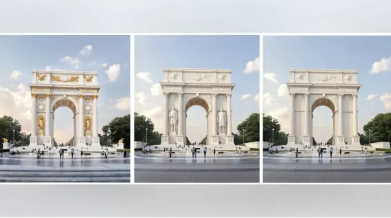 特朗普發布的不同風格“凱旋門”效果圖。圖:環球網 報道援引《華盛頓郵報》稱,特朗普傾向於建造一座高達250英尺(約76米)的獨立拱門,其選址位於美國華盛頓阿靈頓國家公墓和林肯紀念堂之間,面向白宮。其高度遠超高約70英尺(約21米)的白宮和高約100英尺(約30米)的林肯紀念堂,也已超過了世界上最大的凱旋門——巴黎凱旋門(164英尺)。一些建築師和歷史學家對在該區域建造如此規模的紀念碑提出質疑,認為這可能會影響歷史景觀的視覺效果以及區域原有風貌。