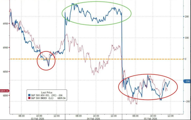 標普500指數中只有200只股票上漲 前幾個交易日,美股的下跌侷限在AI和軟件相關的板塊,週四拋售範圍進一步擴大。標普500成分股中有318只個股下跌,部分原因在於最新勞動力市場數據疲軟。 週四收盤後,標普500指數又一次踩在100日均線上。令市場感到焦心的是,全球雲計算龍頭 週四盤後跳水超10%——公司宣佈今年資本支出將達到驚人的2000億美元,因此影響營業利潤指引低於預期。去年該公司的資本支出約爲1300億美元,而分析師的事前預期僅爲1500億美元。 疲軟的美國就業數據或是主因 貴金屬市場同樣遭遇重創,現貨白銀暴跌超19%,現貨黃金大跌超3%,兩種商品在上周五經歷歷史性拋售後仍在尋找價格底部。