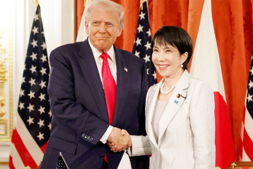 2025年10月,特朗普訪日期間,與高市早苗會面。央視新聞資料圖