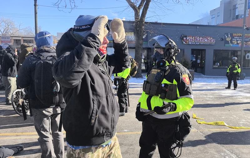 這是1月24日在美國明尼蘇達州明尼阿波利斯市拍攝的示威抗議現場。圖片來源:新華社 《紐約時報》報道,這棟聯邦大樓已成為移民執法人員(ICE)的集結地點,以及反對聯邦移民執法行動的示威中心。抗議者主要針對近期移民掃蕩行動表達不滿。 亨內平縣警長辦公室指出,雖然集會整體平和,但部分示威者向執法人員投擲冰塊,擊中一名警員頭部,並砸碎一輛警車擋風玻璃。警長辦公室發出聲明:“這並非我們的車輛首次遭到損壞。我們已發出驅散令,所有人員必須立即離開該區域。拒不服從者將受到執法部門處罰。” 明尼蘇達州巡邏隊(Minnesota State Patrol)表示,被捕者中25人因未遵守驅散命令而遭州警拘留。巡邏隊聲明強調:“明尼蘇達州巡邏隊尊重民眾合法和平示威的權利。我們的職責是在保障民眾權利的同時,履行保護人民、財產和關鍵基礎設施的責任。”當局確認,逮捕過程中未使用任何武器,一名警員受輕傷。 社交媒體流傳的視頻顯示,一群身穿螢光夾克的警察與抗議者發生衝突,並將多名示威者按倒在地。(完) 【編輯:林曉惠】