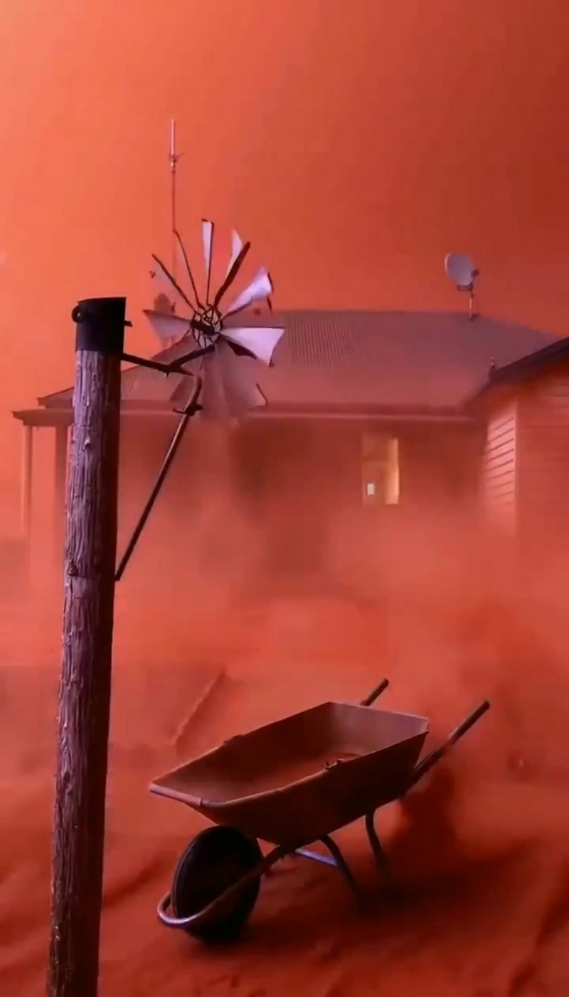 澳大利亞西海岸近日出現“血紅天空”。圖源:YouTube@Rachel985456360 這段影片最早由位於西澳鯊魚灣(Shark Bay)的鯊魚灣露營車公園(Shark Bay Caravan Park)於3月27日在官網分享。從畫面可見,當地天空顏色異常鮮紅,現場拍攝者形容戶外環境“極其詭異”(incredibly eerie),空氣中充滿細微灰塵。受到光線與懸浮微粒影響,地面上的建築、車輛等物體在鏡頭中幾乎失去原有色彩,整體畫面只剩下黑、白、灰與紅色調,讓場景看起來格外不尋常。