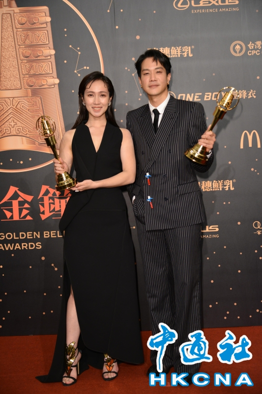 •   第 56 屆電視金鐘獎10 月 2 日於台北市孫中山紀念館盛大舉行。圖為迷你影集《電視電影》男、女配角獎薛仕淩、小薰(黃瀞怡)。 香港中通社圖片