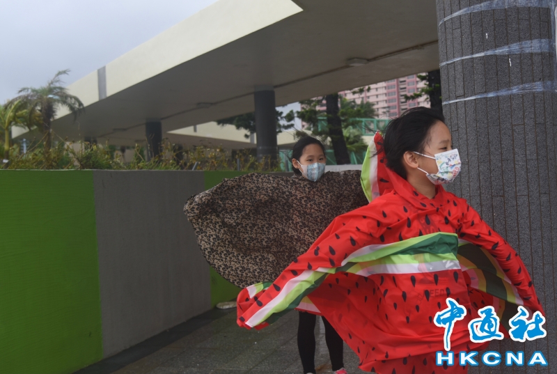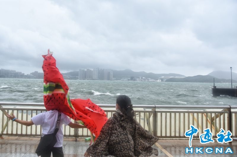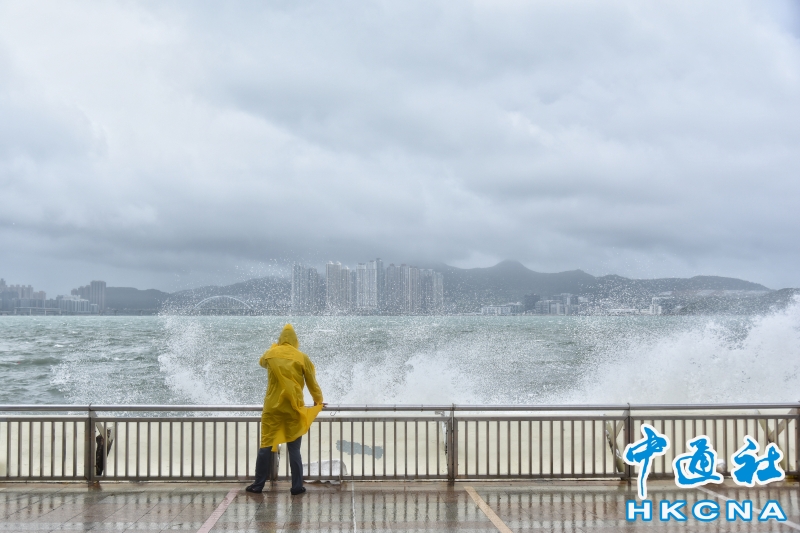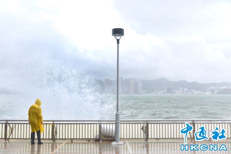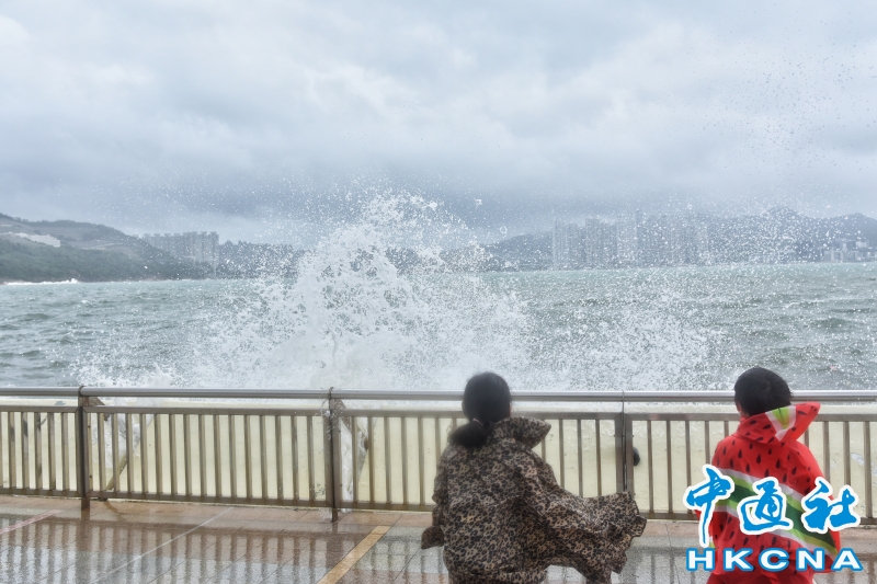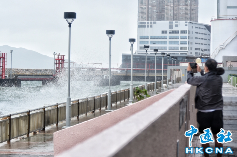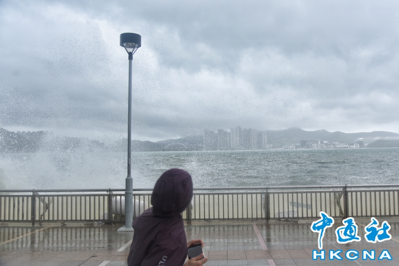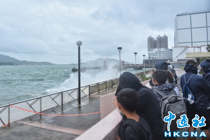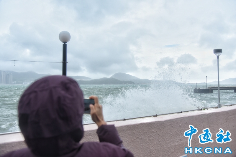香港維持“八號風球” 市民杏花邨海濱追風觀浪分享到: