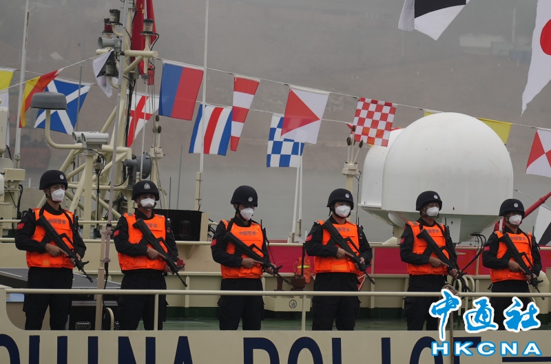 •   參與第112次中老緬泰湄公河聯合巡邏執法的4艘中方執法艇在中國西雙版納景哈碼頭鳴笛啟航。圖為12月10日參與聯合巡邏執法的民警在執法艇上列隊。 香港中通社圖片