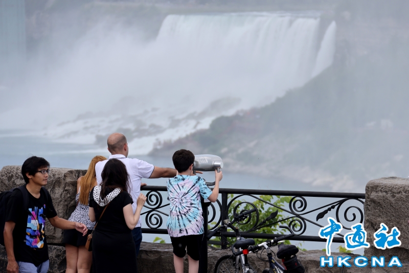 •   當地時間6月29日,初夏時節,遊客在美國與加拿大之間著名的跨國景點尼亞加拉大瀑布加拿大一側賞景。 香港中通社圖片