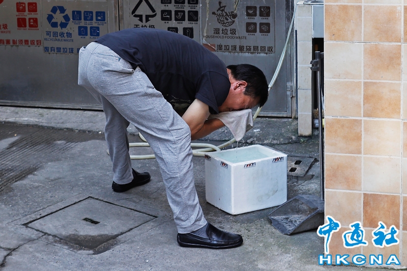 •   7月13日,一名市民洗臉降溫。當日14時30分,上海市徐家匯站氣溫衝至40.9℃,這一數值追平了上海從有氣象記錄以來(1873年以來)的最高氣溫紀錄。 香港中通社圖片