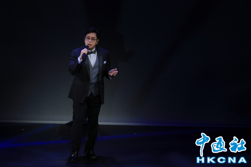 •   為慶祝香港回歸祖國25周年,一場跨界別的大型綜合文藝晚會“鐘聲迴響”7月27日在香港文化中心舉行。圖為著名藝人譚詠麟現身晚會。(香港中通社記者 許其皓攝) 香港中通社圖片
