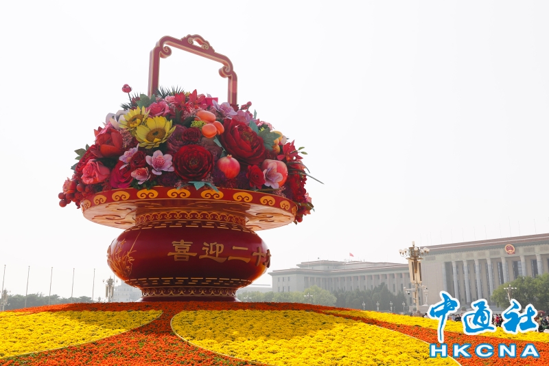 天安門廣場“祝福祖國”花果籃及花壇完工亮相