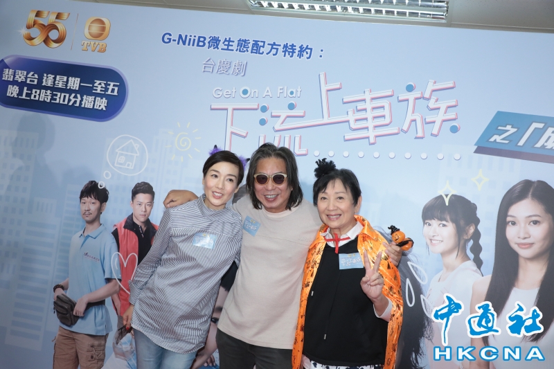 •   10月26日,香港無綫電視於深水埗一社區中心舉行《下流上車族 》宣傳活動。《下流上車族 》為電視廣播有限公司拍攝的時裝喜劇電視劇。圖為藝人江美儀(左起)、林敏聰、鮑起靜出席。(香港中通社記者張海德攝) 香港中通社圖片