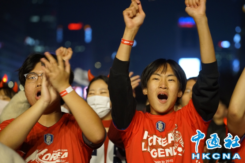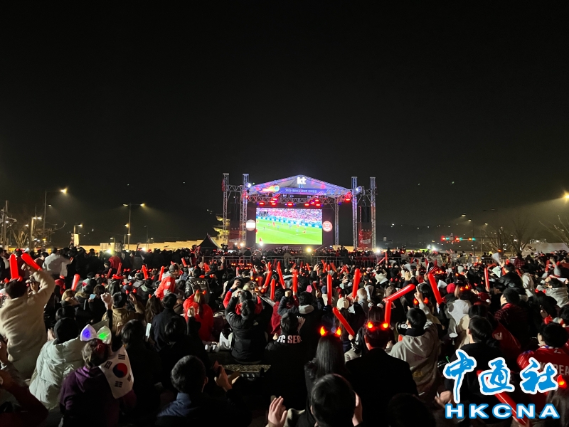 •   當地時間11月24日晚,大批球迷聚集在首爾光化門廣場,為韓國隊加油助威。當日,卡塔爾世界盃小組賽H組迎來首輪比賽,韓國隊迎戰南美勁旅烏拉圭隊。 香港中通社圖片