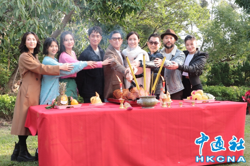 •   香港電影《贖夢》開鏡拜神儀式於12月20日假屯門一別墅舉行。圖為演員朱晨麗、劉俊謙、陳法拉、張家輝等藝人大合照。(香港中通社記者張海德攝) 香港中通社圖片