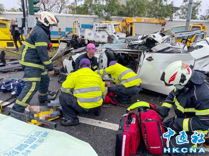 台灣高速公路6車追撞 水泥車翻覆壓扁轎車1男斷氣分享到:
