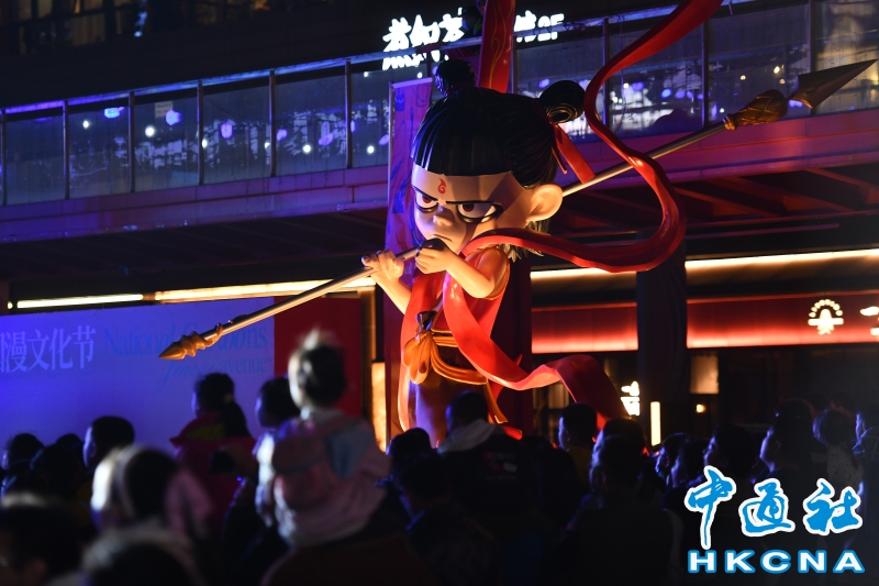 •   3月17日,四川成都,身披混天綾、腳踩風火輪、6米高的“哪吒”IP雕塑在交子大道音樂廣場落成。當晚,2023交子國漫文化節在交子大道音樂廣場舉行。 香港中通社圖片