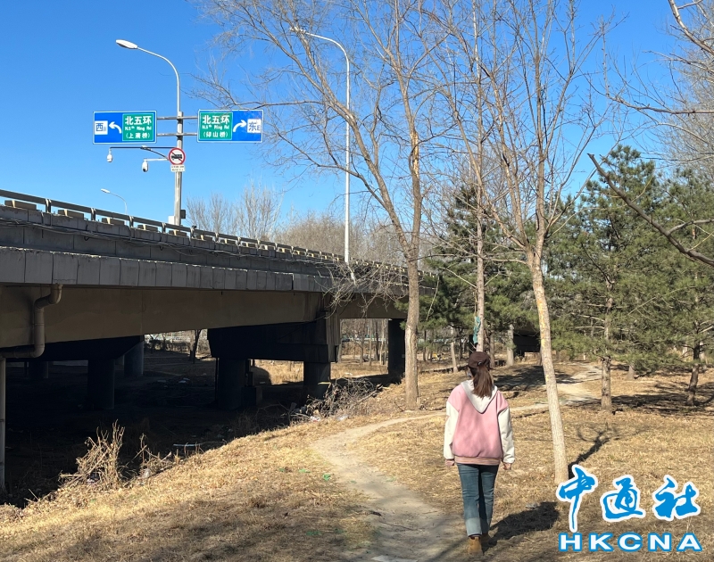 •     北京北五環路奧林西橋下的新建綠隔地帶。攝於2023年3月18日。 香港中通社圖片