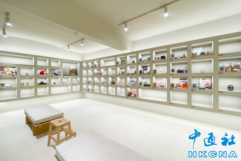 •     彩虹星球店內的寵物骨灰寄存室,格子放著寵物骨灰盒與生前喜愛的零食與玩具。(3月31日攝) 香港中通社圖片