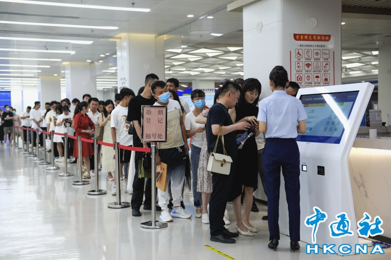 •   5月20日,陝西西安,新人排隊辦理結婚登記。當天是“520”,因與“我愛你”諧音,許多新人都選擇在這一天登記結婚。 香港中通社圖片