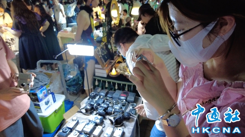 •     近日,一位顧客在北京潘家園二手相機攤販試用CCD相機。 香港中通社圖片