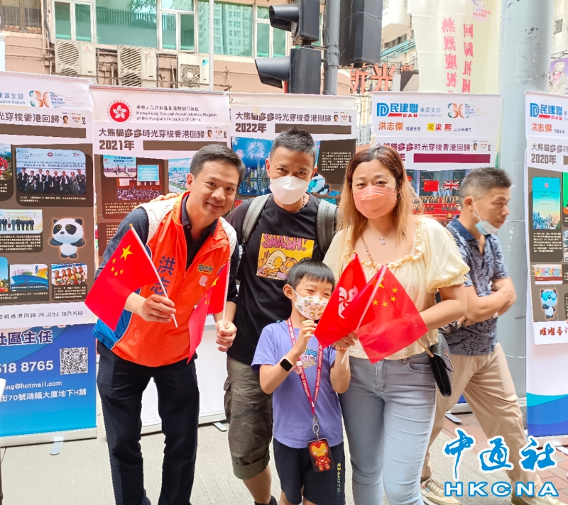 •   7月1日是香港回歸祖國26周年的大日子,香港北角錦屏社區主任洪志傑聯同義工,在北角港鐵站舉辦“時光穿梭,香港回歸26周年”街站宣傳活動。洪志傑透過大型展板,向街坊講解回歸26年來,香港在世界舞台上發揮的積極意義和取得的矚目成就。洪志傑表示,背靠著強大的祖國,香港正由治及興,將來的發展會更加輝煌。 香港中通社圖片