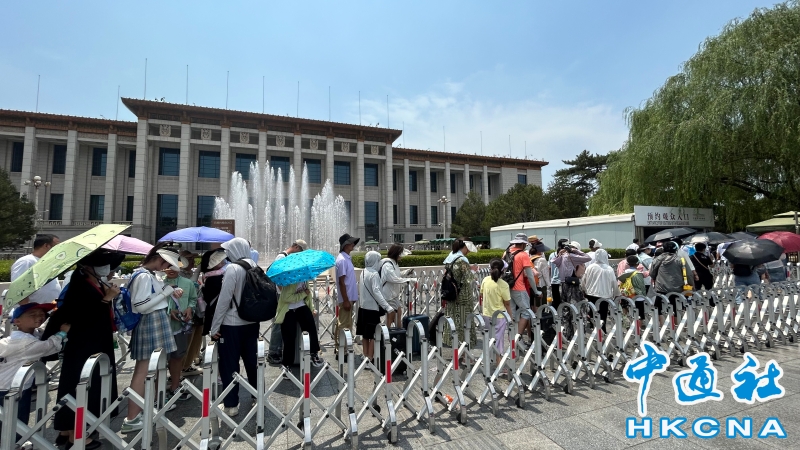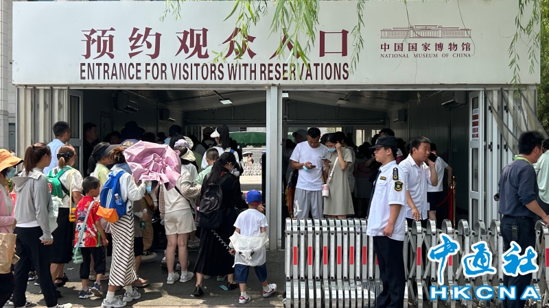 •     7月2日,北京中國國家博物館外,市民遊客排隊等待進館參觀。 香港中通社圖片