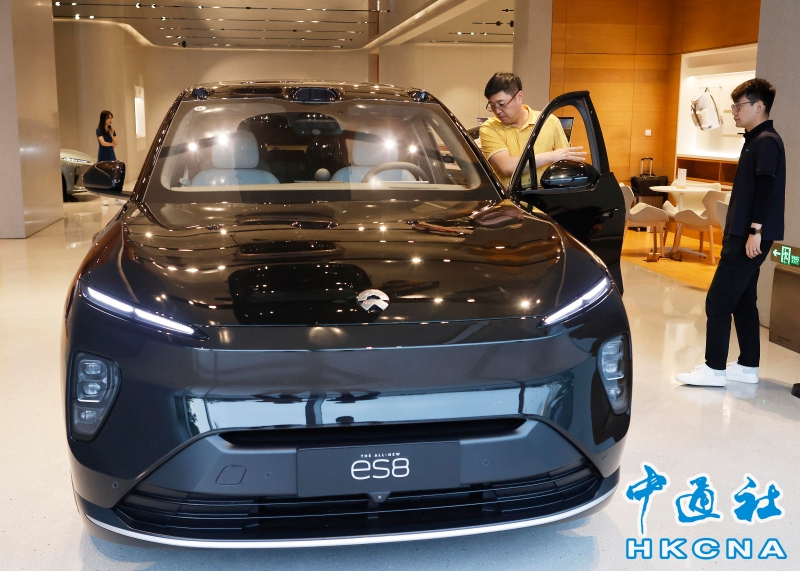 •   7月10日,上海市閔行區一家新能源車銷售店內,工作人員在交流。中國財政部副部長許宏才6月21日在國務院政策例行吹風會上介紹,新能源汽車車輛購置稅減免政策將延長至2027年年底,減免力度分年度逐步退坡。初步估算,實行延長政策,2024年至2027年減免車輛購置稅規模總額將達到5200億元。 香港中通社圖片