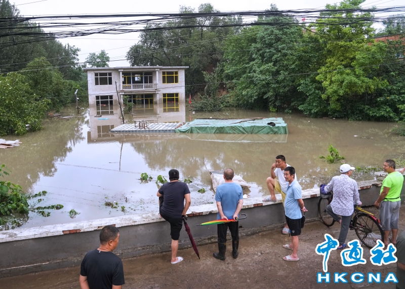 •   7月31日,北京市房山區竇店鎮蘆村,臨近大石河的一座尚未完工的房屋被淹。當日上午,房山區大石河流域出現超標准洪水,沿線多處出現險情。31日10時,北京市氣象台發布分區域暴雨紅色預警信號。北京市水文總站發布洪水紅色預警。 香港中通社圖片