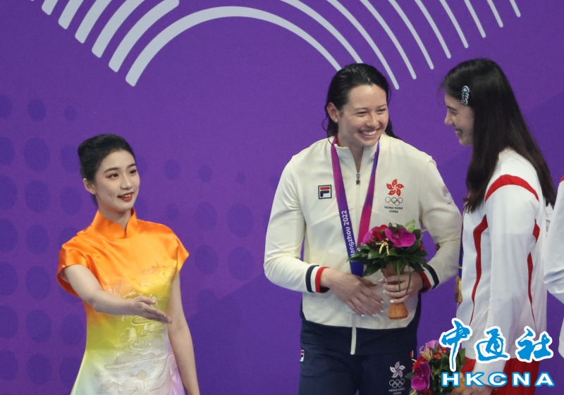 •   9月28日,杭州亞運會游泳賽事繼續進行。在女子50米自由泳項目中,中國奧運冠軍張雨霏(右)奪得金牌,中國香港選手何詩蓓獲得銀牌。(香港中通社記者洪少葵攝) 香港中通社圖片