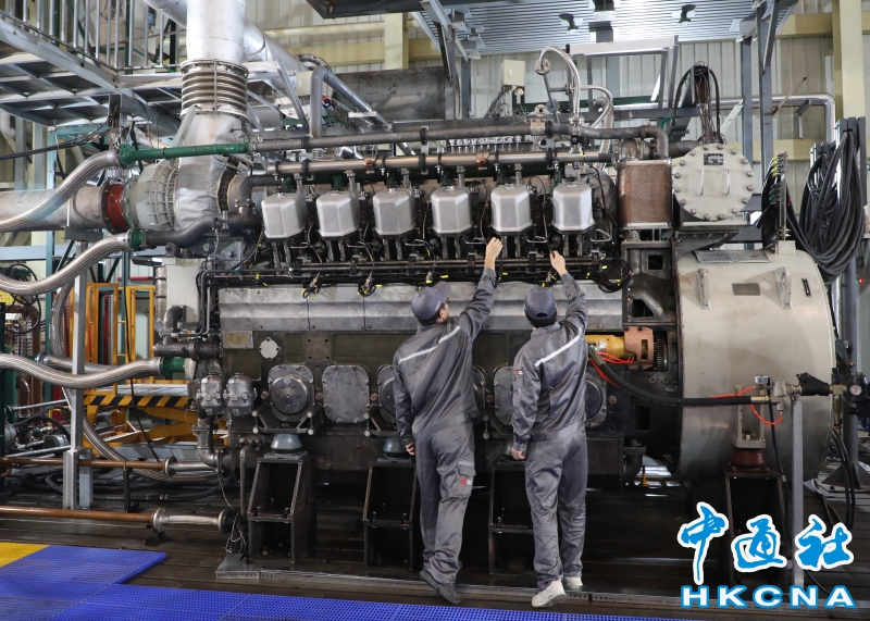 •   11月30日,由中車大連公司自主研發的中國首台中速大功率12V240H-DFA型氨燃料發動機在遼寧大連點火成功,標志著中國已突破并掌握了氨燃料發動機的關鍵技術。圖為中車大連公司自主研發的氨燃料發動機。 香港中通社圖片