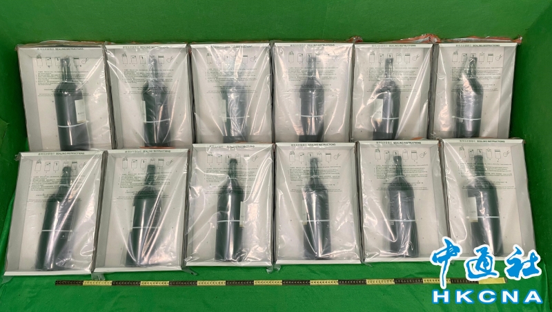 •   1月14日,香港海關公佈1月13日在香港國際機場檢獲約十八公斤懷疑液態可卡因,估計市值約一千八百萬元。圖為用作收藏懷疑液態可卡因的酒瓶。 香港中通社圖片
