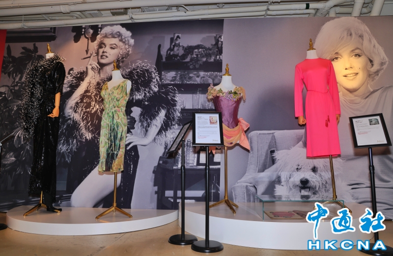 “譜寫傳奇:《花花公子》休·海夫納 x 瑪麗蓮·夢露”將於1月 27日至2月1日在香港中環藝穗會開展,免費展出瑪麗蓮·夢露和《花花公子》創立人休·海夫納的逾50件珍貴藏品。圖爲瑪麗蓮·夢露於電影《七年之癢》中所穿的黑色玻璃紙效果晚禮服(左一)、瑪麗蓮·夢露於1960年夏天出席電影《亂點鴛鴦譜》劇組新聞發布會時所穿的米色絲質針織雞尾酒裙(左二)、瑪麗蓮·夢露為1958年12月22日出版的《生活》雜志拍攝中所穿的服裝(左三)。(香港中通社記者 曹文毓攝) 香港中通社圖片