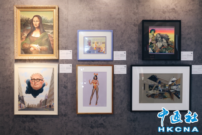 “譜寫傳奇:《花花公子》休·海夫納 x 瑪麗蓮·夢露”將於1月27日至2月1日在香港中環藝穗會開展,免費展出瑪麗蓮·夢露和《花花公子》創立人休·海夫納的逾50件珍貴藏品。圖為勒羅伊·尼曼和阿爾貝托·巴爾加斯的畫作。(香港中通社記者 曹文毓攝) 香港中通社圖片